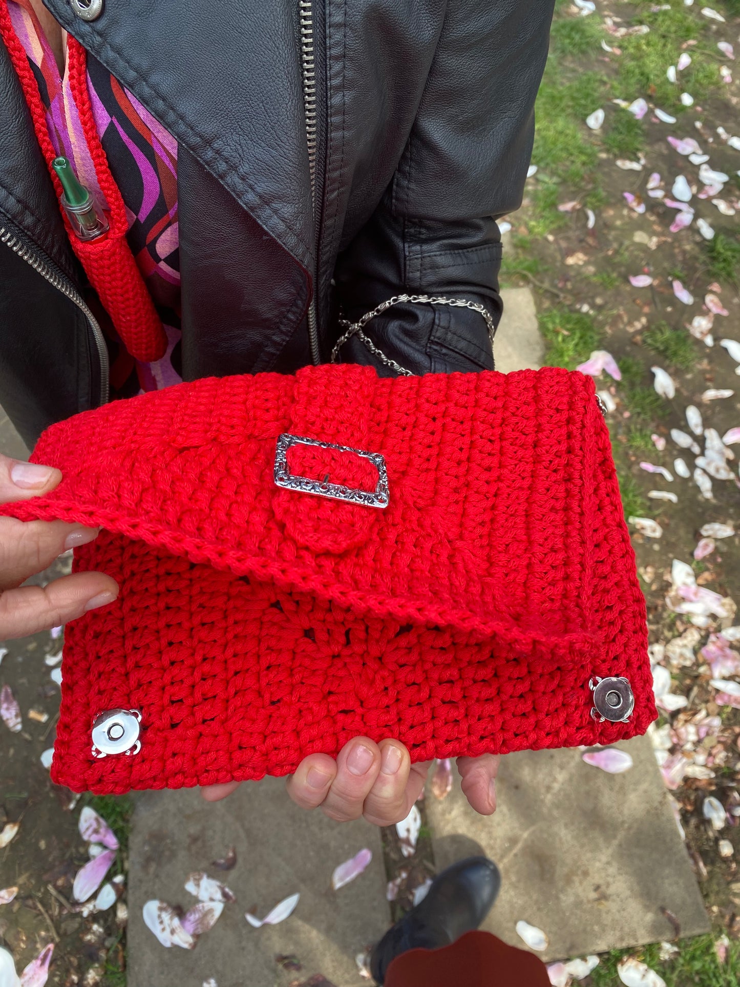 Un'elegante pochette interamente realizzata a mano in cordino misto cotone 100% made in Italy. Foderata in tessuto di cotone 100%. Chiusura con automatici. Tracolla vintage cm 120 in metallo antigraffio. Fibbia decorativa in argento battuto Piccola e leggera, ma capiente quanto basta per contenere un portacarte, un cellulare e un mazzo di chiavi
