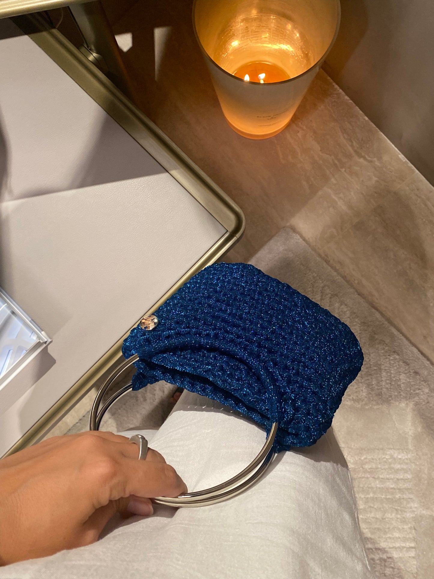 MINI BAG IN FETTUCCIA LUREX CON MANICI TONDI IN METALLO