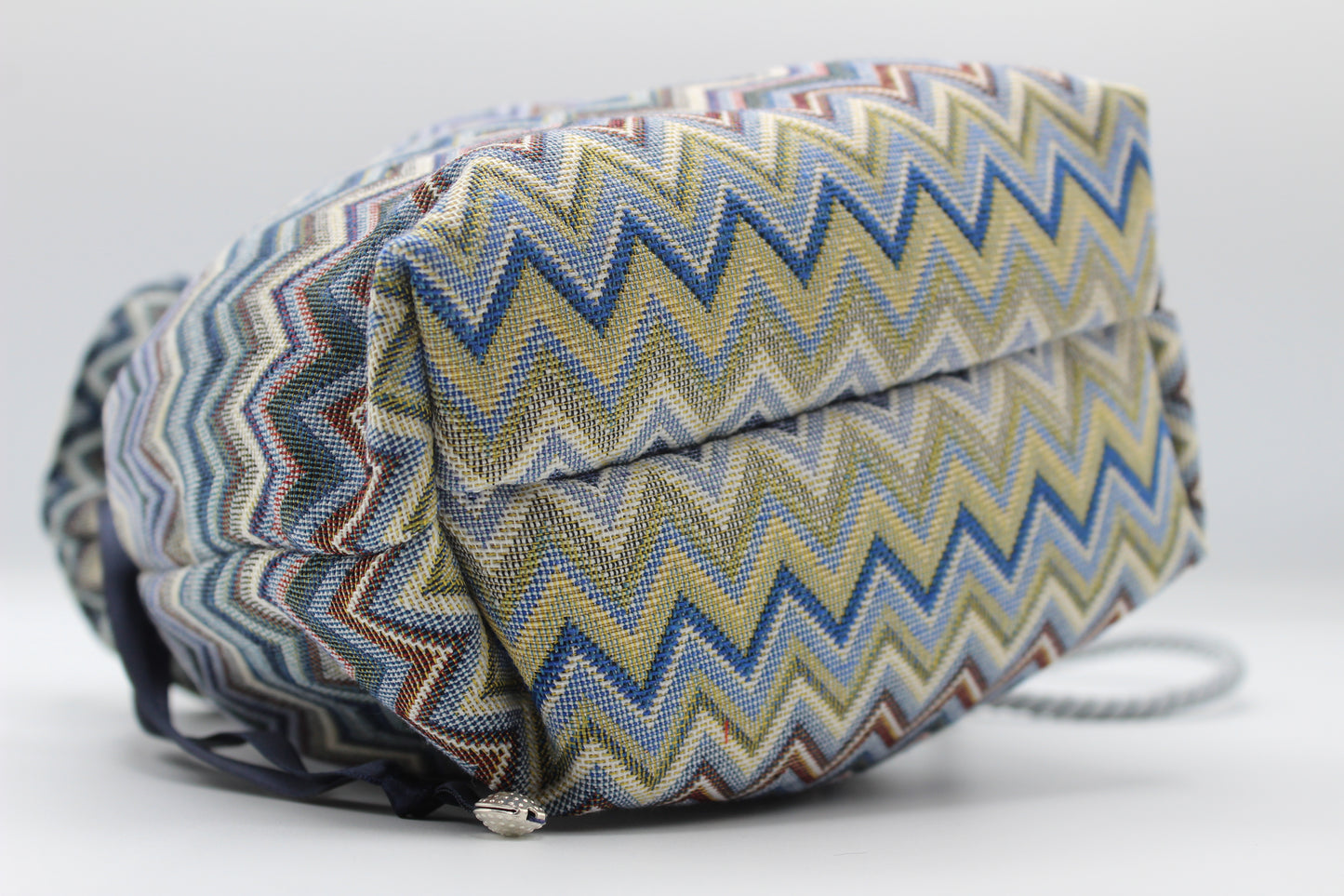 Interamente realizzata a mano. Foderata in raso con tracolla in cordoncino tono su tono. Chiusura a sacco con nastrino in raso. La portabilità proposta è a spalla, ma può essere realizzata su ordinazione anche a mano e a tracolla.